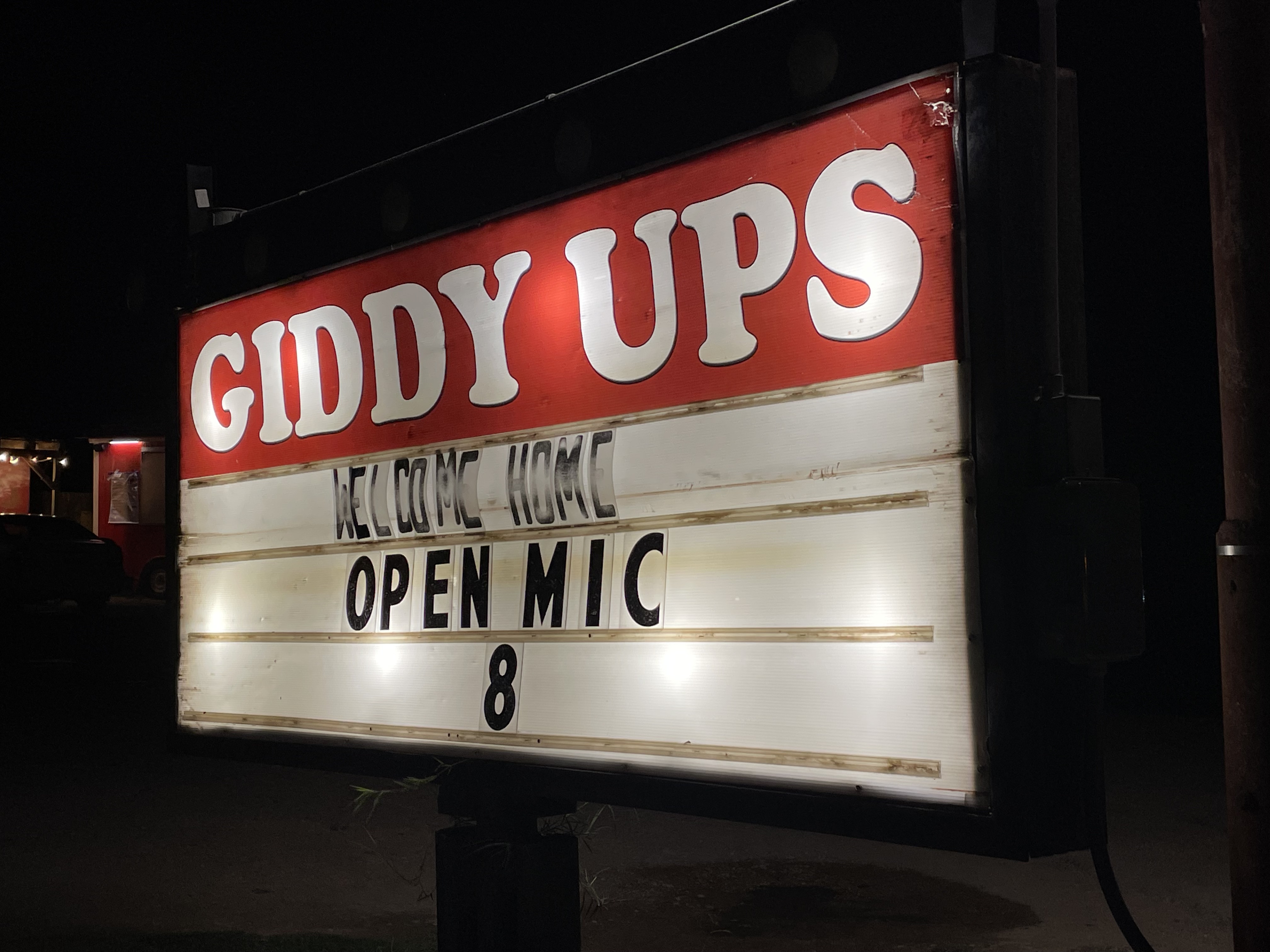 Giddy Ups 12010 Menchaca Rd Austin TX 78748 Sign-ups at 7:30 Performances begin at 8:00, three songs per (generally)